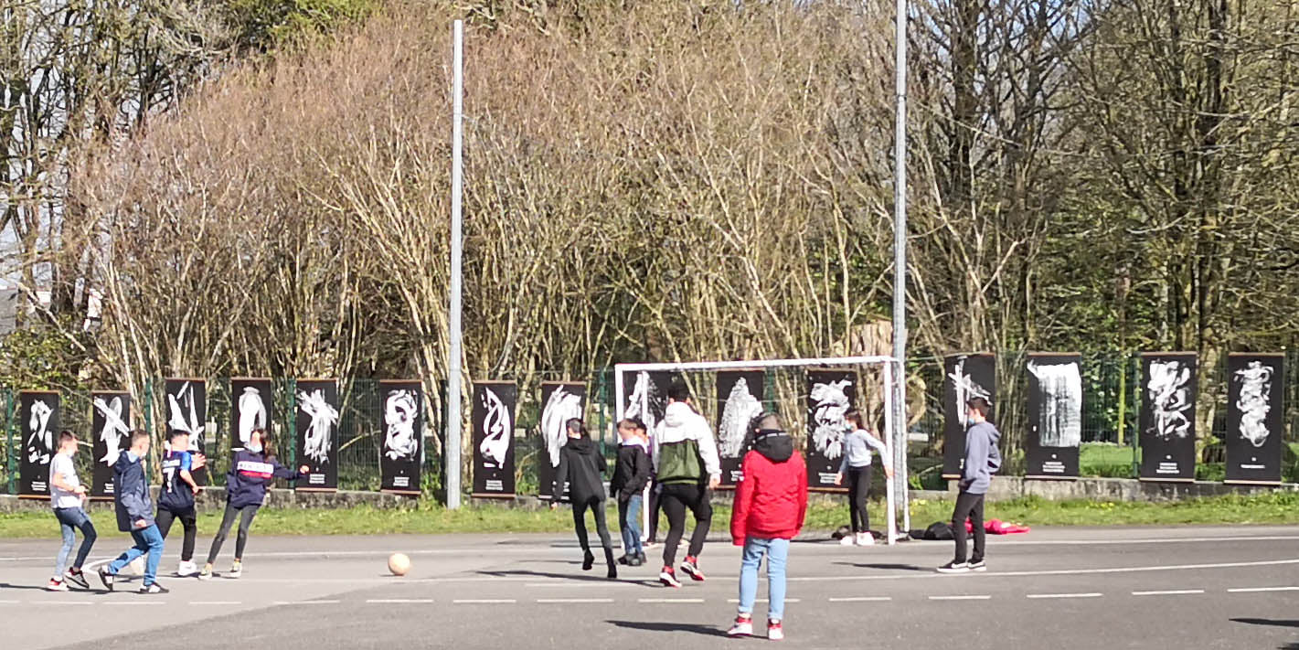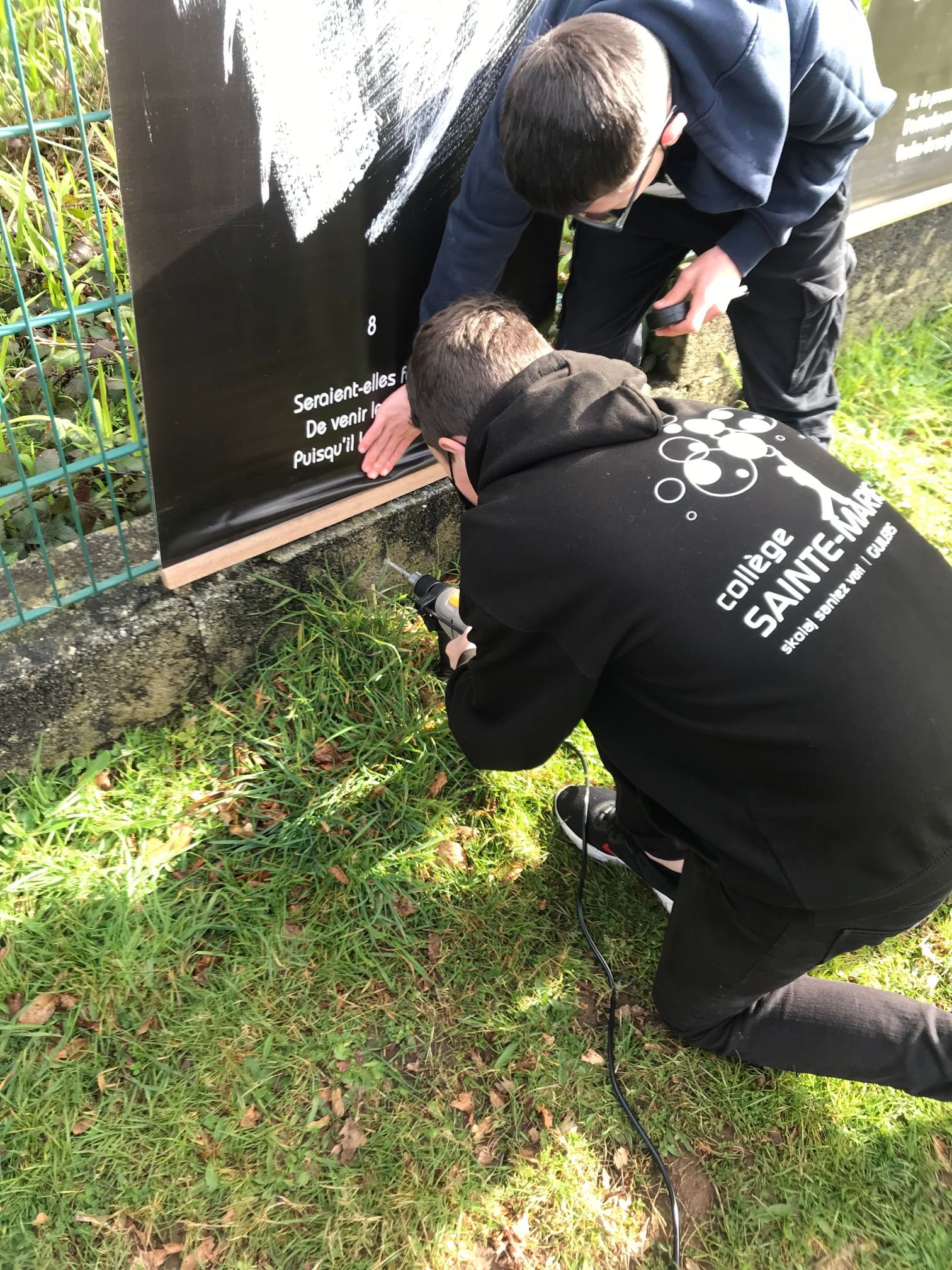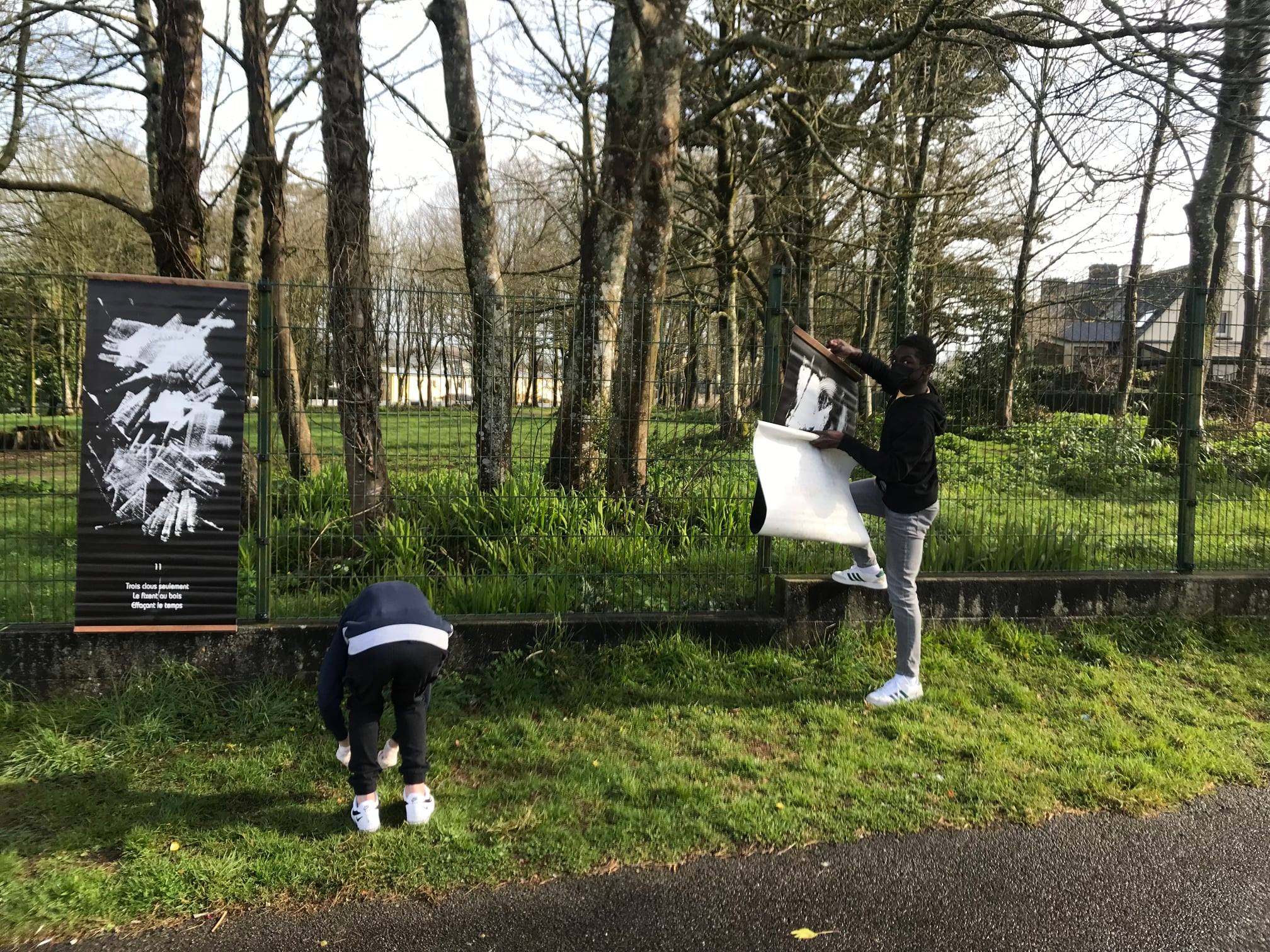 Le collège a la chance d’accueillir une nouvelle exposition de peinture et poésie, qui a été installée ce matin dans la cour, le long du bois de Kermengleuz. Merci aux élèves de 5°B qui ont aidé à l’installation.